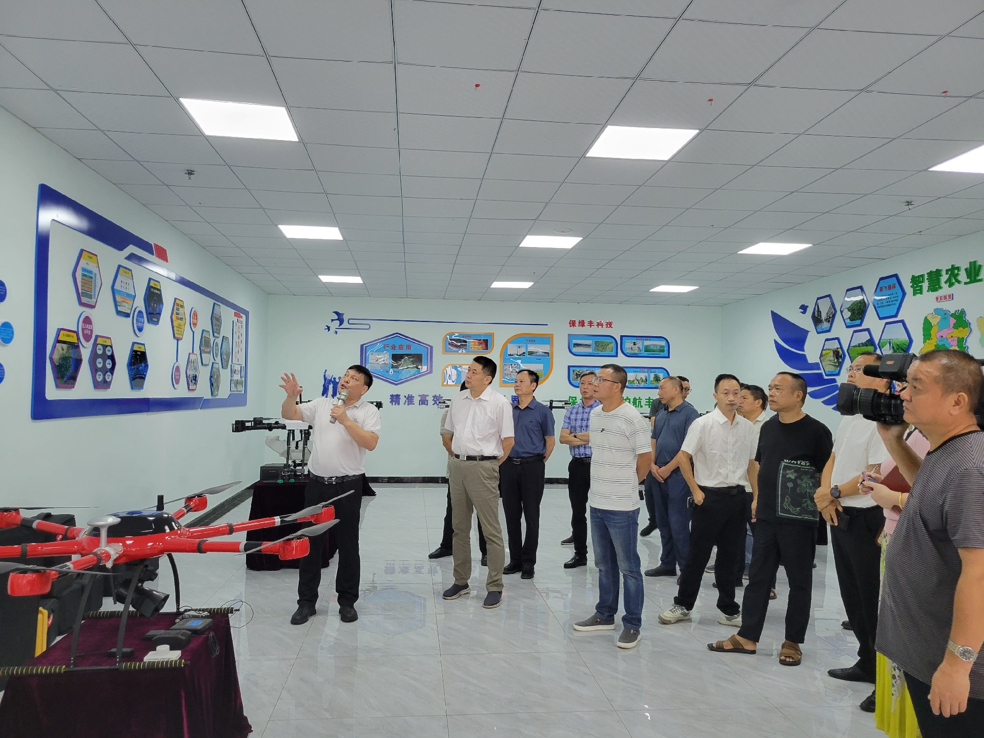 在精飛智能展廳,精飛集團(tuán)董事長(zhǎng)龍永堅(jiān)向調(diào)研組一行匯報(bào)了企業(yè)生產(chǎn)經(jīng)營、技術(shù)研發(fā)、產(chǎn)品銷售等情況,其中重點(diǎn)講解了無人機(jī)數(shù)字農(nóng)業(yè)服務(wù)應(yīng)用示范建設(shè)項(xiàng)目及自主開發(fā)的全國首個(gè)“北斗+無人機(jī)數(shù)字農(nóng)業(yè)綜合應(yīng)用與公共服務(wù)”平臺(tái)運(yùn)營情況。