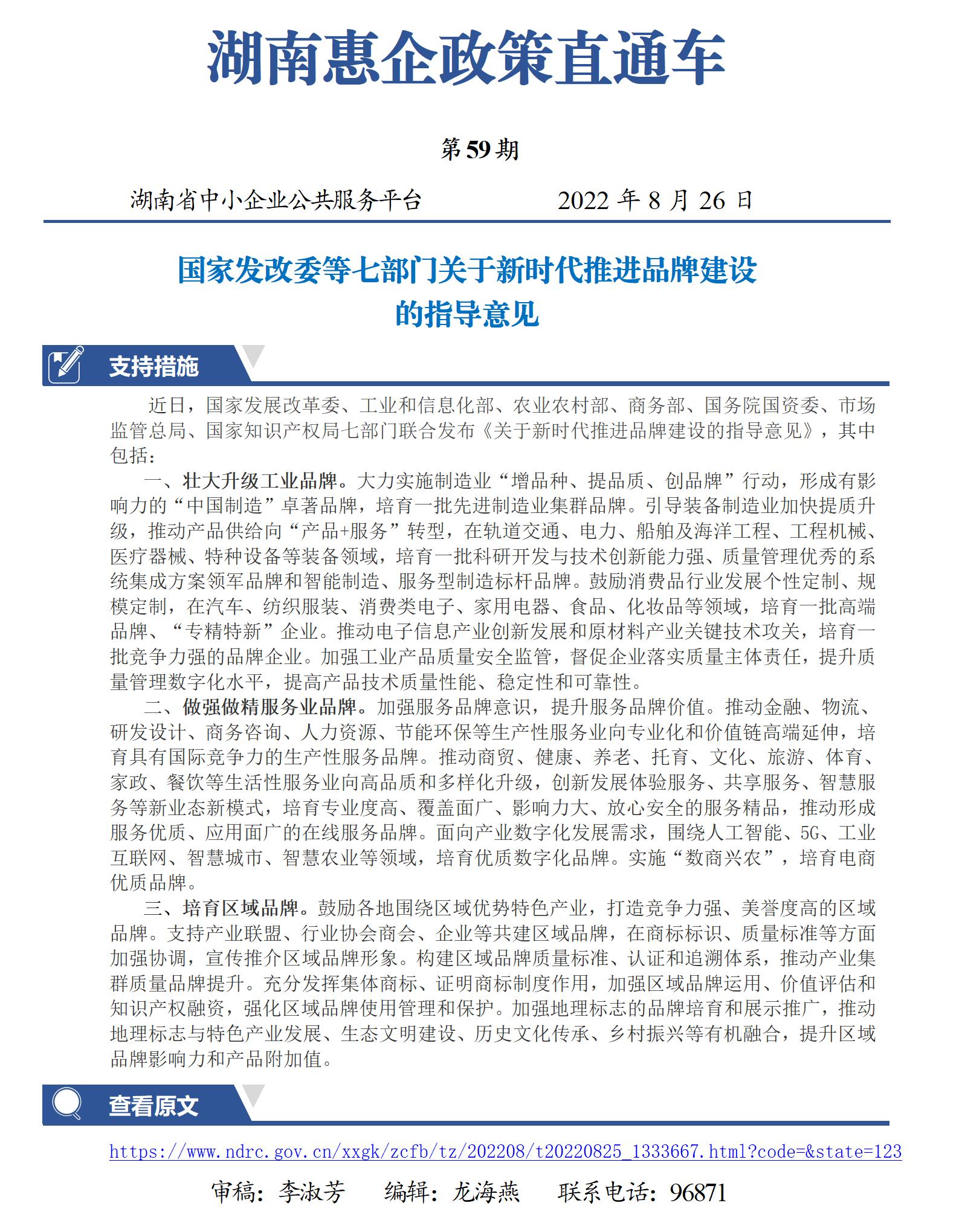 國家發(fā)改委等七部門關(guān)于新時代推進品牌建設(shè)的指導意見