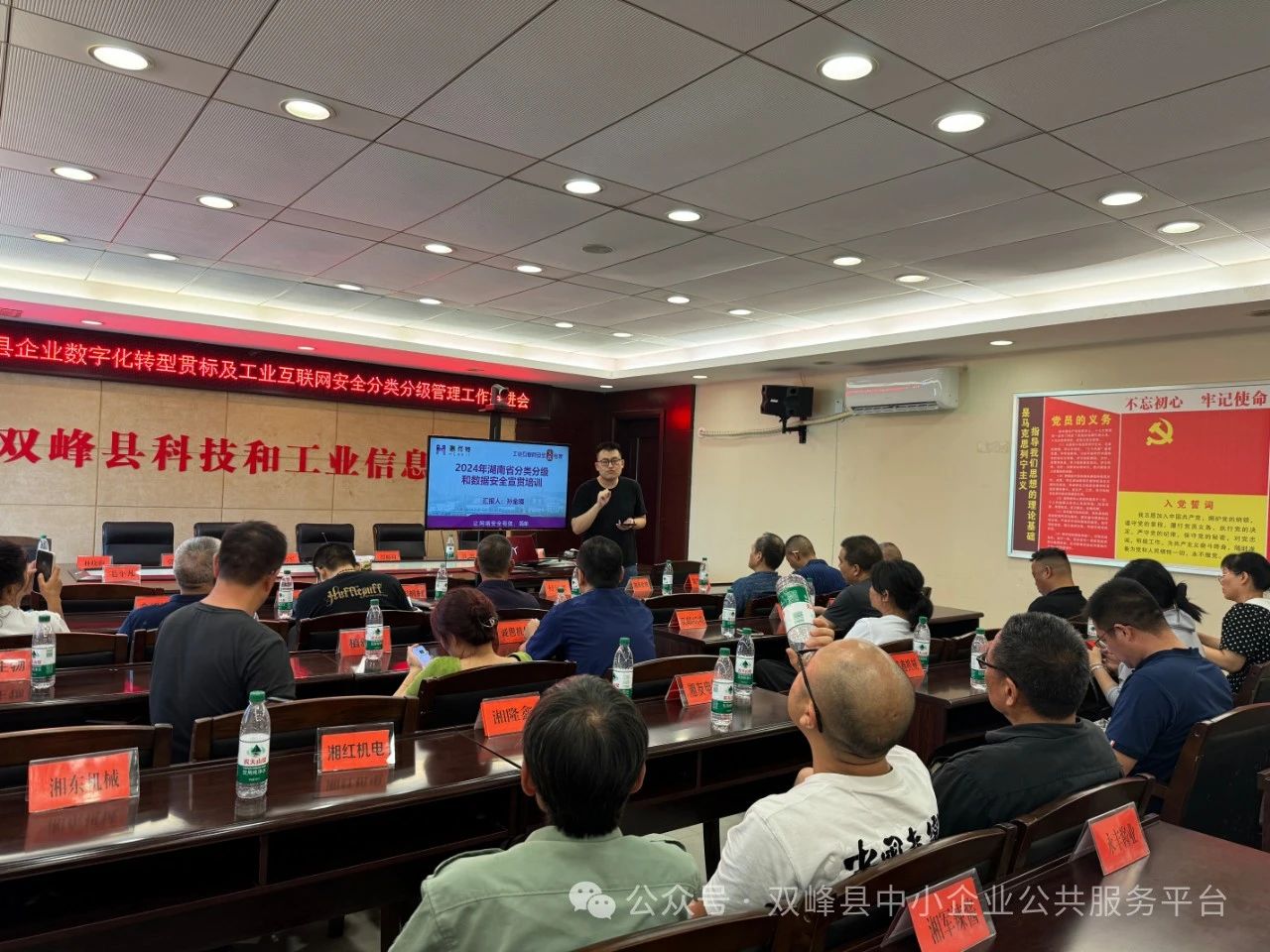 2024年雙峰縣“智賦萬企”企業(yè)數(shù)字化轉(zhuǎn)型貫標(biāo)及工業(yè)互聯(lián)網(wǎng)安全分類分級管理工作推進(jìn)培訓(xùn)會圓滿舉行