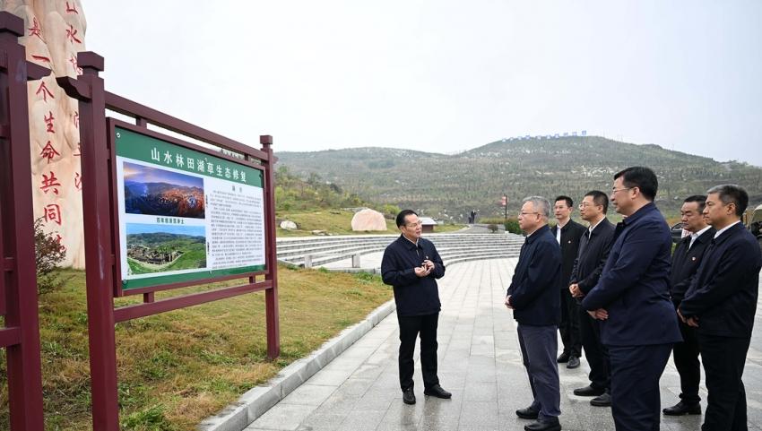 (10月9日,沈曉明來到冷水江錫礦山,實地察看礦山修復、尾礦庫治理、銻污染河道治理等工作。)